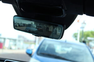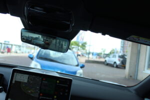 Een bijzonder detail is de afwezigheid van een traditionele achterruit. In plaats daarvan is er een digitale binnenspiegel die het beeld van een camera toont. Even wennen, maar al snel waardeer je het heldere zicht, vooral in het donker of bij slecht weer. Het systeem werkt feilloos en geeft een breed en scherp beeld.