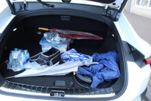 De stoelen zitten uitstekend – stevig, met fijne steun en bovendien aan beide zijden elektrisch verstelbaar. Tijdens de lange rit richting Duitsland merk je hoe belangrijk dat is. Zelfs na uren achter het stuur stap je fris uit. De Polestar 4 biedt een grote hoeveelheid ruimte, zowel voorin als achterin. Passagiers achterin hebben beenruimte te over en de grote kofferbak maakt de auto ook praktisch bruikbaar voor langere vakanties of een weekend weg.